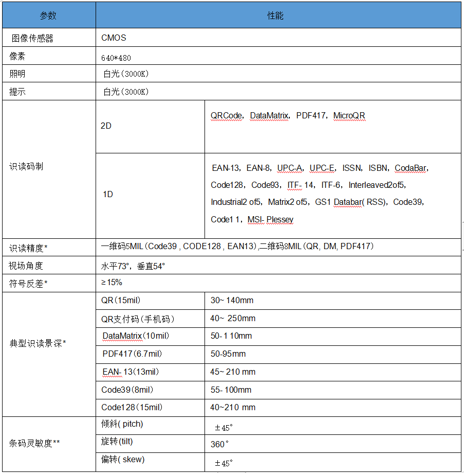 可以輕松讀取手機屏各式條碼,自帶三顆LED補光/指示燈,配套640*480像素大角度鏡頭,通過8-PIN杜邦插座連接,
