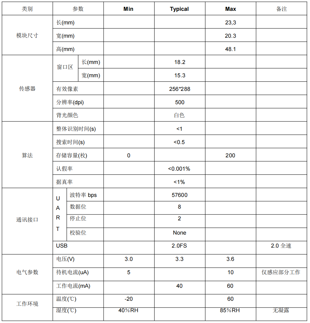 本指紋模塊通訊接口為 USB 和 UART 兩種通信接口, 本模塊作為從設(shè)備,由主設(shè)備發(fā)送相關(guān)命令對其進行控制。