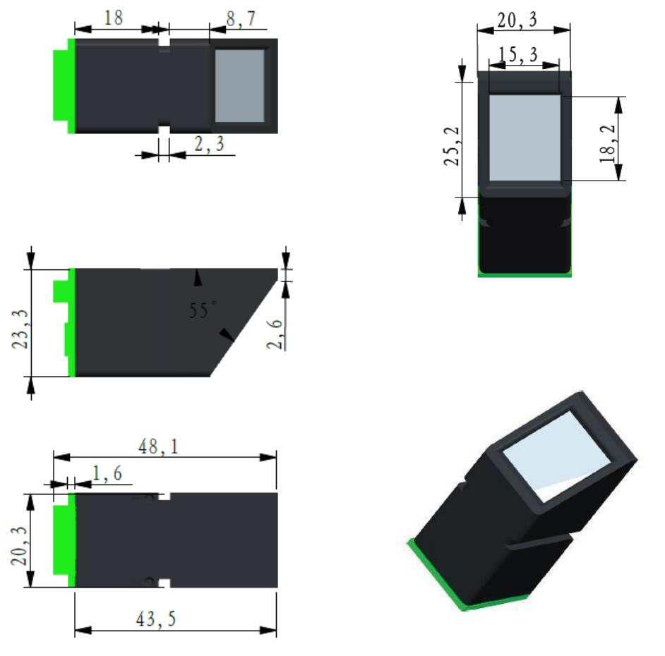 本指紋模塊為集成了光路和指紋處理部分的一體化指紋處理模塊,具有體積小、功耗低、接口簡單的特點,可靠性高、識別速度快、干濕手指適應(yīng)性好,指紋搜索速度快。 指紋圖像讀取時,對干濕手指都有靈敏的反應(yīng)和判斷,獲得最佳的成像質(zhì)量,適用人群廣泛。 也可 定制自學(xué)習(xí)適應(yīng)功能,根據(jù)使用者的習(xí)慣、氣候等的變化自動調(diào)整參數(shù),做到更好的匹配。 具備自學(xué)習(xí)功能,指紋識別過程中,提取新的指紋特征值識別成功后將該特征值融合到之前的指紋特征中,實際使用過程中越用越好用。
